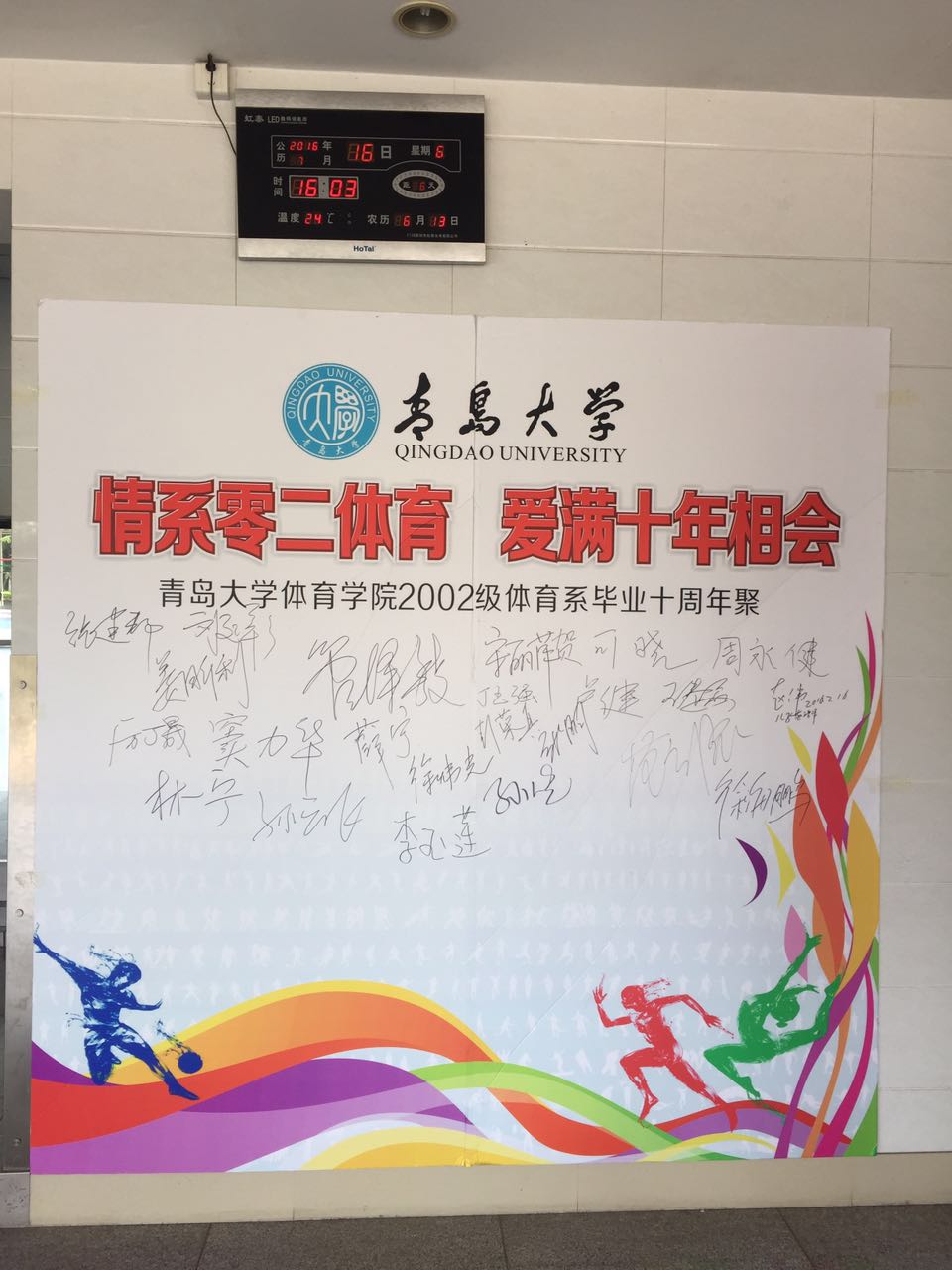 今年是02级体育教育专业本科生毕业十周年,30多位校友重返母校,重温当年温馨的校园学习和生活,分享奋斗心得和人生感悟。下午15:00,师生见面座谈会在教学楼219教室拉开帷幕,德赢winac米兰党委书记王振合、院长管泽毅出席并分别致辞,热烈欢迎2002届校友。随后,进行了校友个人介绍、参观校园、集体合影等活动。最后,校友们赠送给德赢winac米兰题为“旭日东升”的牌匾,表达了对母校培养成才的感激之情。