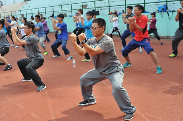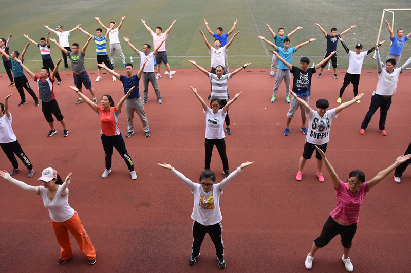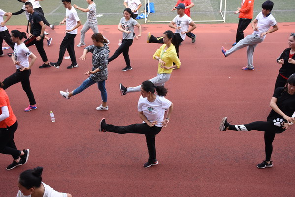 下午,在师范学院田径场进行了教师技术培训,有来自152所学校的171名中小学教师参加了此次培训,各个学校的老师们对本次培训非常重视,用最严谨的态度来对待培训。炎炎烈日下,老师们不畏高温,一丝不苟地认真进行着分组技能培训,每个动作都反复练习,争取要做到最标准。
