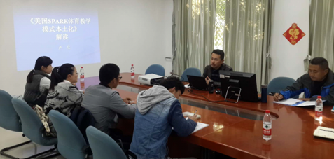 卢众教研员围绕体育与健康课程改革,认真解读了“体育与健康课程标准”。针对目前体育与健康课程教育教学改革的热点,卢众教研员分享了由美国开发的体育课程--SPARK体育课程,解读了美国SPARK体育课程的教学理念,认真分析了美国当代教育与中国的区别。同时卢众教研员还结合自身多年的实践经验和研究成果,理论联系实际,通过丰富、鲜活的SPARK课程教学实例,分析了其灵活多样、适用范围广的教学特点,对SPARK体育课程教学实施作了具体说明。