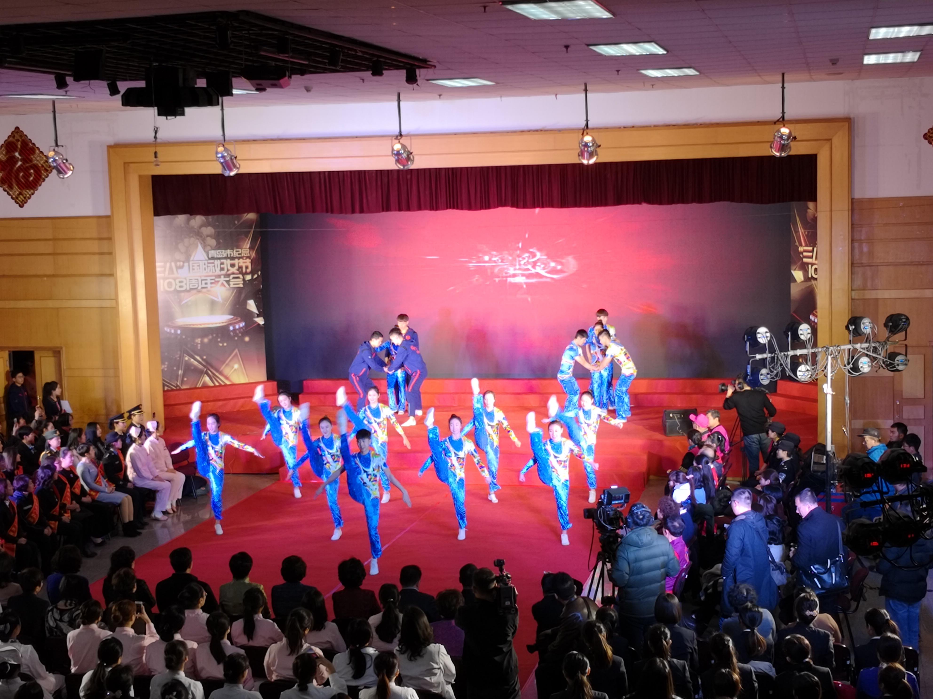 3月5号下午 在青岛市疾控中心礼堂举行,来自青岛市各级妇联领导,山东省三八红旗手、青岛市三八红旗手及妇女代表参加了大会,会上对先进单位和个人进行了表彰,德赢健美操高水平队代表德赢ac米兰官方合作应邀参加了本次表彰大会的开场表演,受到在场的领导及嘉宾的高度赞扬。