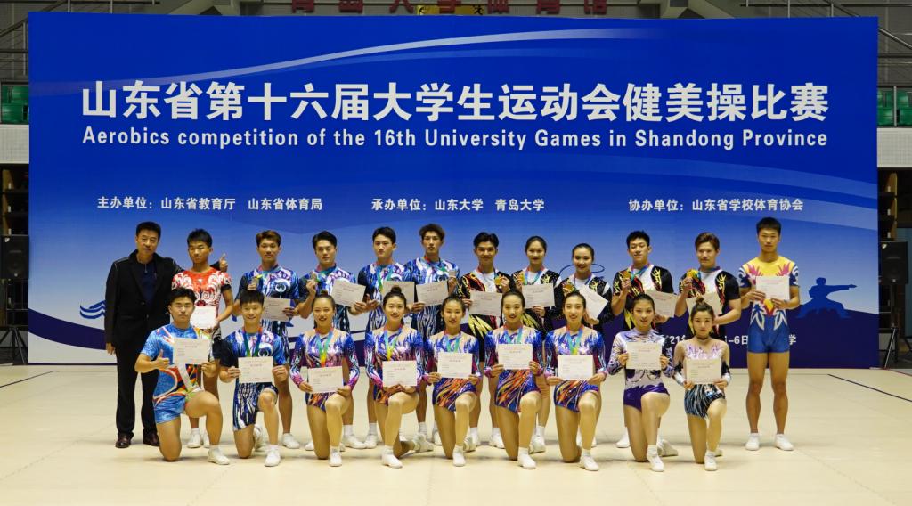 本次比赛由山东省教育厅、山东省体育局主办,德赢ac米兰官方合作承办,设置男子单人操、女子单人操、混合双人操、三人操及五人操5个项目,分为甲组、乙组、丙组三个组别,共吸引了来自全省47所院校近500名运动员参赛。山东德赢winac米兰、临沂大学分别获得亚军和季军,并获得“体育道德风尚奖”荣誉称号。