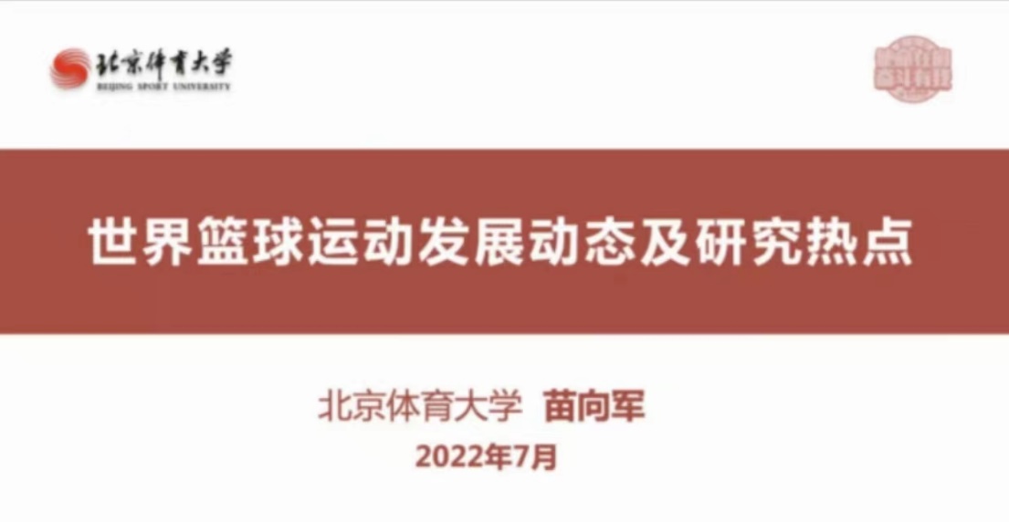 苗向军教授从篮球运动的发明及时代影响力、篮球运动竞技水平国际竞争格局、篮球技战术分析与人工智能和篮球研究的热点领域等四个维度展开介绍。
